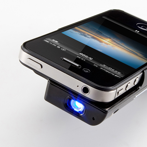 Japan-based accessory maker Sanwa Supply started selling the 400-PRJ011 [JP] in its online store, a DLP micro projector that slides onto an iPhone 4 or iPhone 4S. The device comes with a 2,100mAh battery, which takes about five hours to fully charge and provides enough juice for 2.5 hours of projector usage.