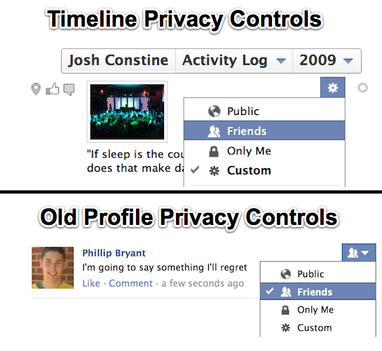 “As we explained when we announced timeline in September, and we reiterated last month when it became available worldwide, timeline doesn’t change the privacy of any content. Everything is accessible to the same people who could or likely had seen it already in their News Feed sometime in the past. In addition, timeline offers a number of new, simpler, and more effective ways for people to control their information, including activity log, the most comprehensive control tool we’ve ever developed. We think these innovations are things privacy advocates should be applauding.”