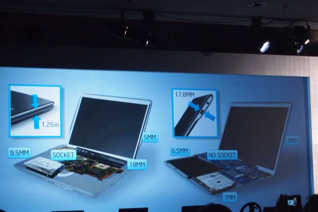 Most important, this chipset allows for a much thinner machine. Most laptops go from 9.5mm to 6.5mm with socketless chips that are soldered right into the motherboard (something hackers will hate) as well as improved heat dispersion.