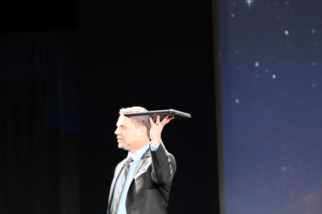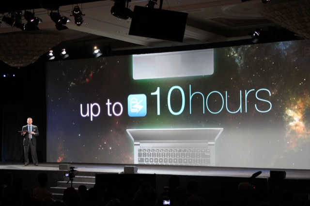 The Series 9 weights 2.5lbs, and measures in at just half an inch thick. In fact, it’s 30 percent smaller than the first-gen model. It took 30,000 hours to design, and features all the same requirements we’re seeing out of ultrabooks.