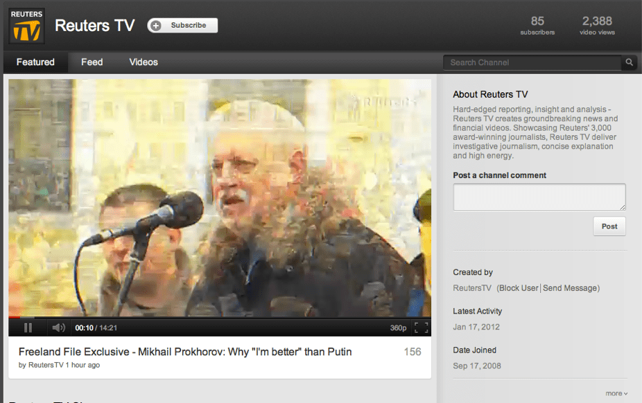 Reuters, however, is arguably the biggest news provider among the 100 being featured on YouTube’s partner page. And plans for its newly arrived TV news channel are no small effort.