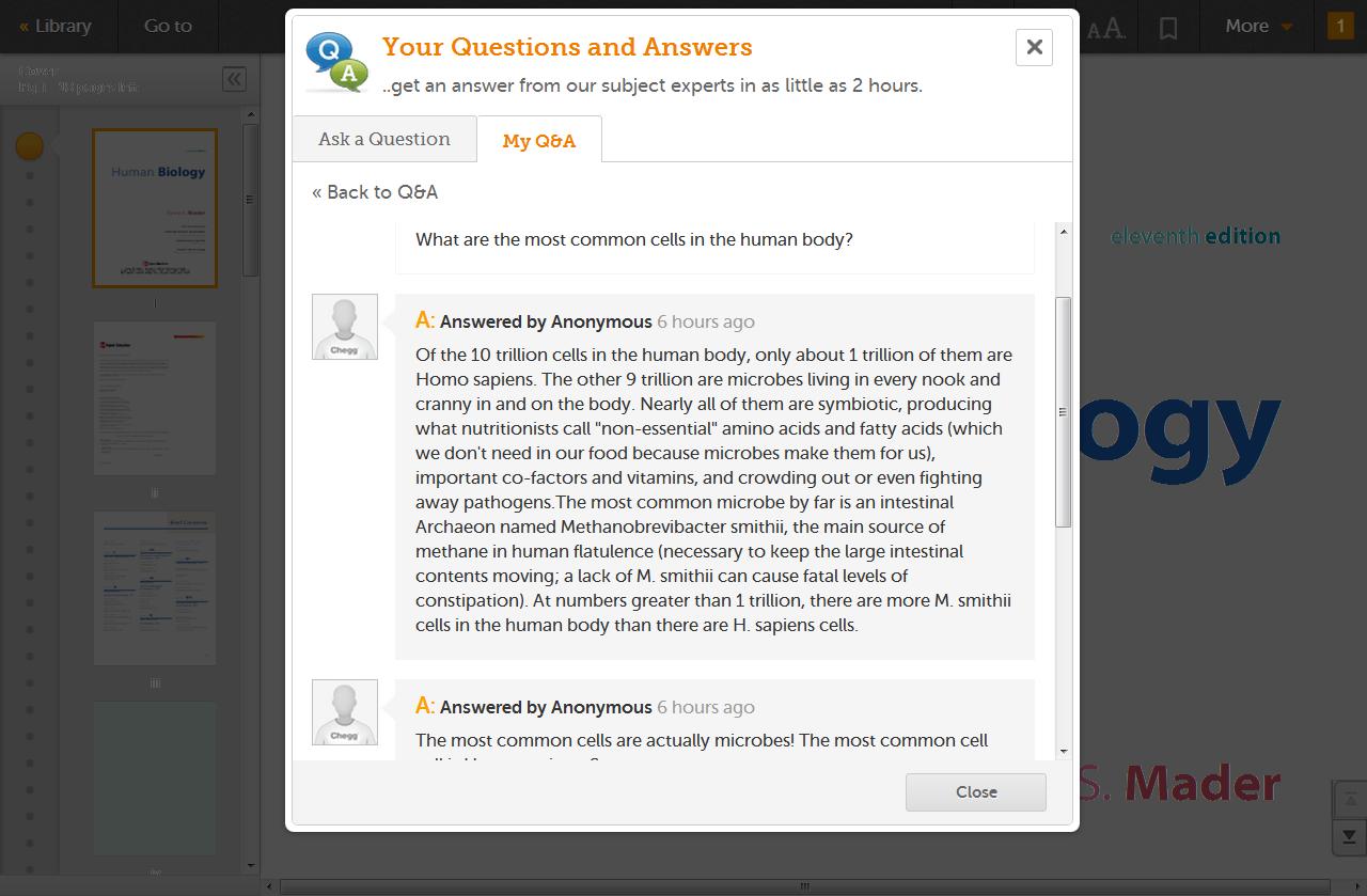 Other features include a view of the passages that users have marked up the most, a tool for looking up definitions from Wiktionary and context from Wikipedia, and a way to ask questions drawn from the text you’re reading, and get answers back from the existing community of Chegg users.