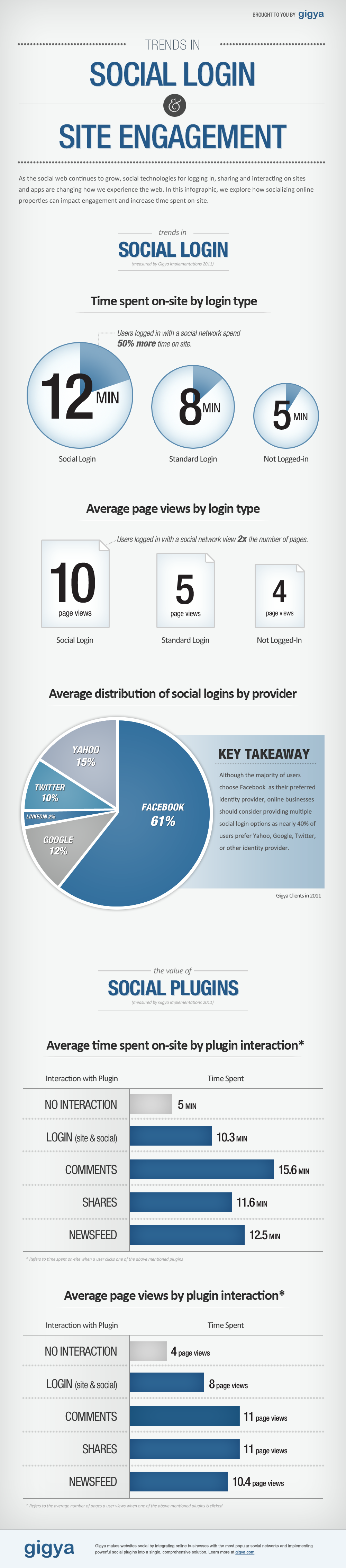 Thanks to some research (and a nifty infographic) from Gigya, the makers of SaaS technology (or a social CRM platform, if you will) that helps businesses make their websites social, we now have further proof that one of the best ways to encourage repeat visitors is through social logins.