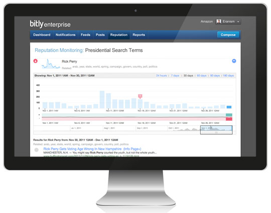 The new search technology was originally launched into beta testing in October, with the first part being a sentiment analysis system with alerts. Today’s dashboard update includes that feature, as well as tools for managing multiple accounts (Bitly Composer) and message optimization. The latter lets customers automatically share content at precisely the right time, based on when it will be most relevant to the audience and most likely to drive traffic. (For more details, see Bitly’s blog post).