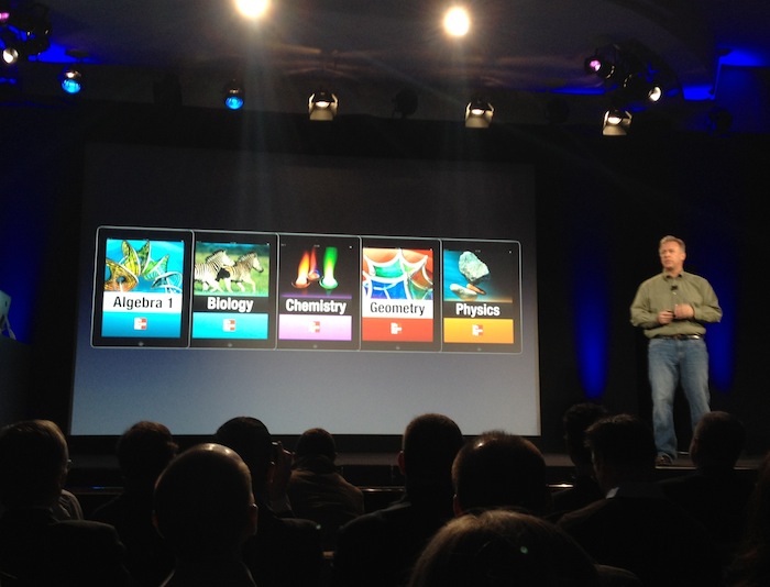 In kicking off the event, Apple SVP Phil Schiller noted that high school students in the U.S. that enter as freshman only have a 70 percent chance of graduating these days. In urban areas, it’s more like 60 percent, he said. Schiller was setting up Apple’s iBooks textbooks as a possible way to improve this.