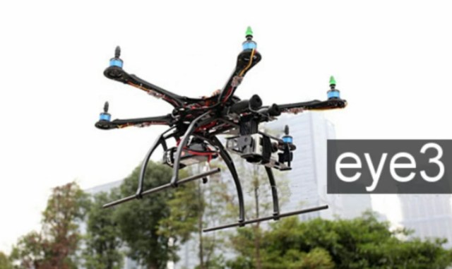 Update: Kickstarter has nixed the project. People in the copter/drone community have expressed concern that the eye3 was simply a kit put together from 3rd-party parts. The image above, in fact, was taken from this Xaircraft Hexa Frame drone page. So apparently they were just testing already-available kits and parts and reselling them at a significant markup. Shady!