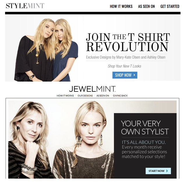JewelMint proved a success, and the company launched its second vertical, StyleMint, in July 2011 — this time backed by Mary-Kate Olsen and Ashley Olsen, who design exclusive T-shirts for the site.