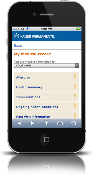 Members will be required to log on to mobile.kp.org, just as they do on kp.org today. “Security for mobile access includes (but is not limited to) user authentication, automatic log-out of ‘My Health Manager’ after a period of inactivity, and secure internet connections. Personal health information will remain on Kaiser Permanente’s secure servers, and no personal health information will be stored on a mobile device.”