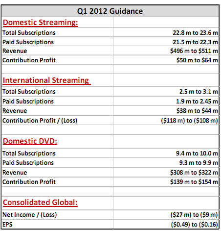 In the last quarter of 2011, for instance, the DVD business lost 2.76 million subscribers, while streaming gained 220K. While it hopes streaming subscription rates will pick up over the next year (both domestically and internationally), there’s no reason to think that the declining DVD numbers are going to change.