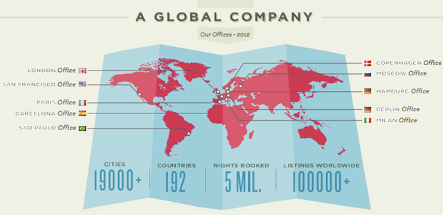This quarter (Q1 2012), Airbnb will open five new offices in European cities – namely Barcelona, Milan, Copenhagen, Moscow and Paris – and also one in São Paulo, Brazil. Airbnb already boasts offices in San Francisco, Hamburg, Berlin, and London.