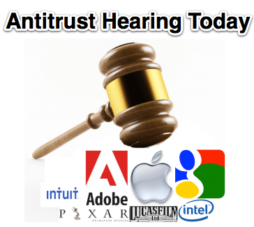 [Update 4:30pm PST 1/26/2011: Judge Lucy Koh says “This case is moving forward…this case is going to survive the motion to dismiss.” That means the defendants’ motion to dismiss the case will almost surely be denied when the judge files her official ruling soon. Koh said she may dismiss some specific claims but the plaintiffs will be allowed to amend their complaint. She mentioned “It’s hard to make the inference that there was no conspiracy”. Read on to find out why and what that means for the companies. More details from the hearing at the end.]