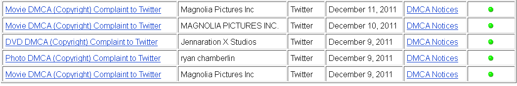 They also mentioned that they were working with Chilling Effects to make notices and orders sent to Twitter publicly available. At the time of the post yesterday, the site wasn’t up yet, but you can now browse it at chillingeffects.org/twitter.