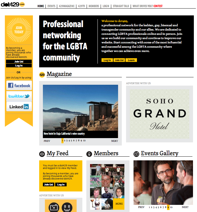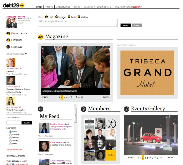 And in that sense, dot429 is aiming to be more than just the “gay LinkedIn,” as its service has become a hybrid: Part social network, part LinkedIn, part events company and publishing platform. Klein says that there is a need — not just for the LGBT community — to capture the networking happening on LinkedIn and connect it with offline environments, which is why dot429 is playing host to “produced, polished, and professional” live events intended to connect content and people both through work and in their offline lives. It’s a similar idea to the one that inspired Meetup.com, and many others.