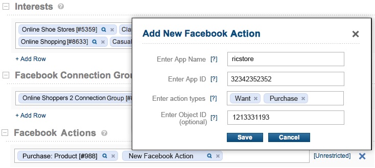 Open Graph action targeting is still in beta so the technical side is bit tricky. There’s no browsable database of Open Graph apps, actions, and objects to target, so advertisers need to find their Open Graph ID numbers by clicking on them in an existing activity story. Third-party developers of Facebook Ads API platforms and services like Nanigans, TBG Digital, and AdParlor are trying to make it easier by creating pre-defined audience segments that advertisers can target.