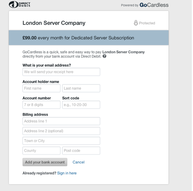 For consumers, GoCardless makes it quick and easy to make payments. After the initial sign up, users can authorize future payments anywhere GoCardless is offered with just one click. The company has also created a dashboard where users can easily manage all of their payments made via their bank accounts, giving them more control over their online spending.