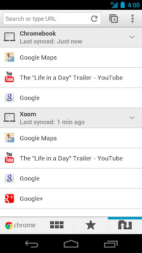 The syncing feature comes with a neat trick: open up Chrome on your phone, and you can see a list of all of the tabs you currently have open on your computer’s copy of Chrome, which is awesome if you’re frequently having to email yourself directions or links to various product reviews. Better yet, this works even if you’ve shut the lid on your laptop and it’s in ‘sleep mode’ — though if you exit out of the browser entirely, the list will go blank.