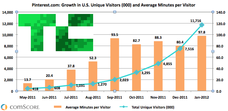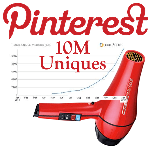 It’s beautiful, it’s addictive, and now Pinterest is having its glorious hockey stick moment. TechCrunch has attained exclusive data from comScore showing Pinterest just hit 11.7 million unique monthly U.S. visitors, crossing the 10 million mark faster than any other standalone site in history.