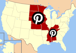 Unlike most web startups, Pinterest’s core user base is not the typical early adopter set from the west and east coasts of the United States. While the Pacific and North East regions contained the most Pinterest users in May, now its strongholds are in the East South Central and West North Central States, such as Kansas, Missouri, Minnesota, and Mississippi.