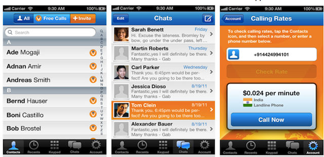 Vonage says the app, which works over Wi-Fi, 3G and 4G wireless data networks, provides users with international per-minute calling rates that are, on average, 70 percent lower than major mobile carriers and 30 percent lower than Skype (based on per-minute rates to the top 50 countries called).