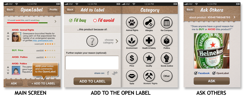 For example, users could add notes about the manufacturer’s use of child labor, sweat shops, animal testing, toxic chemicals, and more, and then give the product a thumbs-down. While those types of things sound like they may give OpenLabel somewhat of an activist slant, there are other types of things that could be shared, too, like the company’s political leaning and donations, its support for or stance against particular political or rights issues, like SOPA or employees benefits for same-sex couples. OpenLabel could also be used to share information about whether the product was recalled or had child safety issues, contained allergens like gluten, or whether it was derived from GMOs.