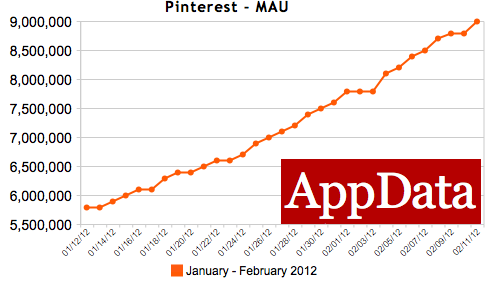 Over 1/5 of its fast-growing Facebook-connected monthly user count use Pinterest each day. At the start of 2012 the daily user count was just 810,000, but now its at 2 million according to AppData. This week comScore said Pinterest hit 10 million U.S. monthly unique visitors faster than any independent site in history.