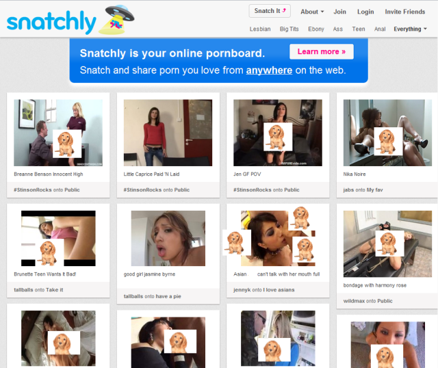 Snatchly is a ‘Pinterest for porn’. There’s really not much more to say about the site, except that it’s far from the only raunchy Pinterest clone among Pinterest clones (looking at you, Pornterest).