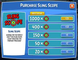In classic freemium style, you get the first power-ups free, but more uses will cost you. There’s the Sling Scope for pinpoint targeting, Birdquake to shake down precariously perched pigs, Super Seeds for stronger birds, and the King Sling for a velocity boost. Those looking to fire birds for eternity can buy 1000 uses of any power-up for $20. These purchases combine with mobile app sales and physical merchandise to make Rovio a very well monetized developer.