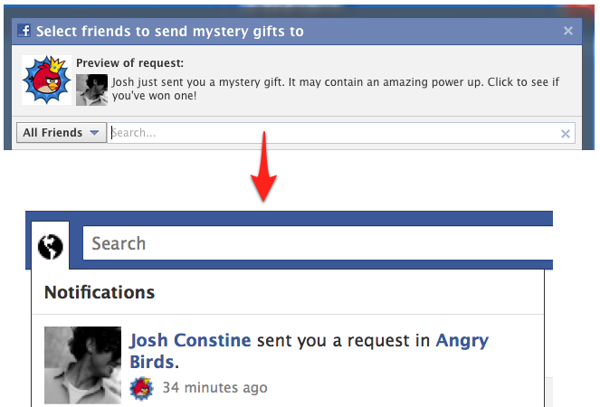Rovio has also nested some enhanced social features to foster pig-smashing community and juice up user acquisition. You can see high scores of friends and invite others to compete through the flash game’s sidebar. You can also send free power-up gifts to friends that appear as Facebook notifications they’re sure to see, which will definitely help Angry Birds with virality.