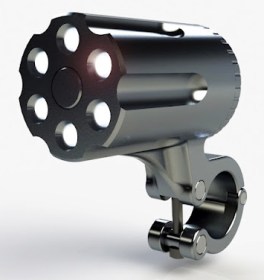 The Defender looks like the chambers of a revolver, and looks like it’s about as durable. It’s made from aluminum and it’s totally waterpoof. It runs on three AA batteries, which powersix bright LEDs, and they should run for 100 hours. The mount is a secure grip that can only be removed by a special screwdriver that comes with the lights, and it doesn’t look like it’s going to yield to anything less than a crowbar if someone wants to take it by force. It’s a bit… huge, but for some that’s a draw.