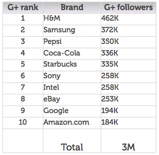In fact, the top brand, H&M, has more followers now (462,000) than all of the top 100 did in December. The report says most of the growth is happening in the top 10 brands, who have 10 times as many followers as brands 11-100 combined. BrightEdge CEO Jim Yu says that on social networks, it’s not unusual for bigger brands to dominate, but the degree to which that’s true for Google+ is “a little unusual.”