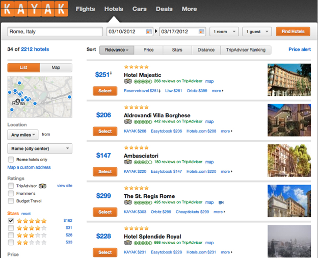 In October, Kayak launched a hotel Recommendations filter that allowed users to narrow results by expert recommendations, and pulled in reviews from Frommer’s and Budget Travel. Users will also be able to filter search results by TripAdvisor as well, ticking off a box will filter out any non-TA reviewed properties.