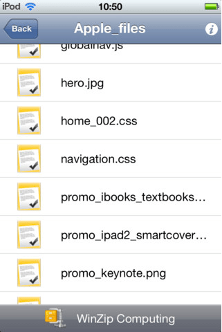 Fortunately, WinZip has just launched on the Apple App Store and it effectively rids us of this particularly annoying issue. After installing, a single tap will let you get a peek at what’s inside the .zip file. If you tap again, you’ll be able to look at individual files, even if you don’t have the associated applications installed on your iPhone or iPad.
