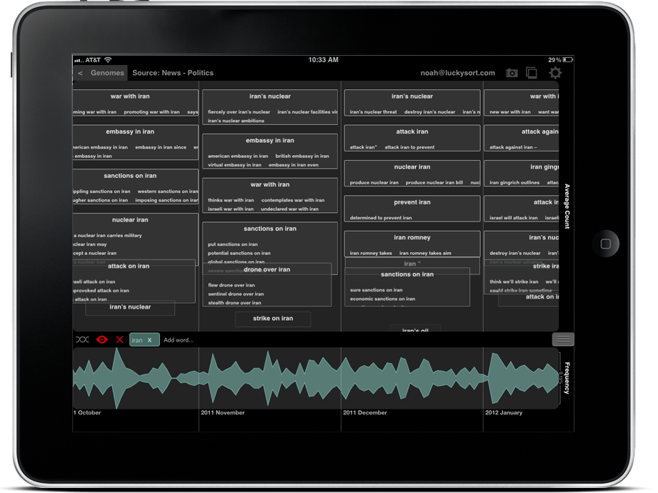How would you like to crunch your way through big data on your iPad? That’s one of the many promises of Lucky Sort, the stealthy new Portland, Oregon-based startup building a visualization and navigation engine called TopicWatch meant for discovering patterns in live data streams.