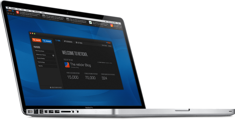With the updated version of the Retickr app (ver. 2.0), which rolls out today at noon (ET) on the Mac App Store, you can now sync your Facebook, Twitter and Google Reader feeds and then incorporate those streams into “playlists” along with the news feeds from over 85,000 sites that the service crawls. This addresses one of users’ bigger complaints about the earlier version of Retickr’s product: an inability to import OPML files or sync with Google Reader. Done!