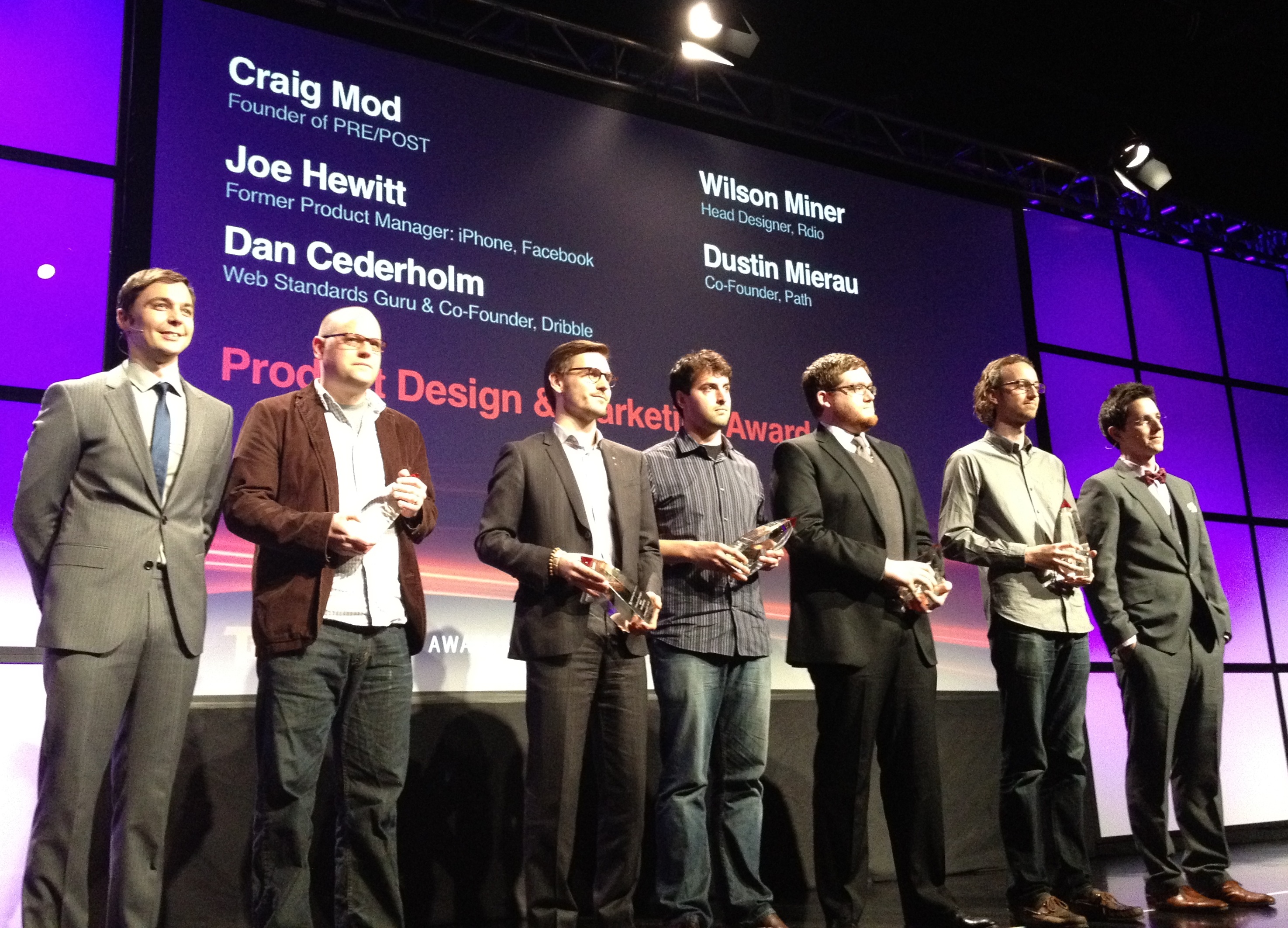Supported by Founders Fund, TechCrunch, and New Enterprise Associates (NEA), the awards ceremony was hosted by Jim Parsons, the Emmy-award winning star of nerdy television comedy show The Big Bang Theory at San Francisco’s Museum Of Modern Art. Mayor Ed Lee spoke, Facebook engineer Mark Slee DJ’d, and past winners toasted the future of our industry.