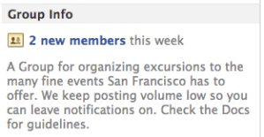 Eighteen months later and the group now has 280 members, no spam, and has led to some epic last minute meet-ups at concerts because people don’t mute it. Hopefully Facebook users heed the new description prompt, create focused discussion and collaboration spaces, and get as much out of Groups as I do.