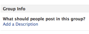 Since Groups launched in October 2010 users have been able to add a description. However, they were provided no prompt as to what to enter, and likely just noted a theme rather than a purpose. Now a prompt and input field for group guidelines are immediately visible in the right sidebar.