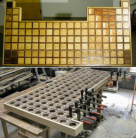 Yesterday, a new video, or rather episode of “Bytesize Science,” emerged on YouTube wherein Gray discusses the tale behind his periodic table table. The video has been being passed around, and was tipped to us (thanks to Kirk Zamieroski). We thought it was worth sharing, based on pure awesomeness, the high quality kitsch, and DIY mastery. Luckily no radioactive elements made it into the table — or at least we didn’t spot any lead. No one was hurt in the making of the table, as far as we know, other than perhaps Schrodinger’s cat?