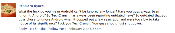 I just want to start this out by saying I love you guys. I really do. TechCrunch is lucky enough to have a really smart, well-informed readership which keeps us diligent in our reporting. You guys are also pretty hilarious, and who doesn’t enjoy a good ROFL now and then.