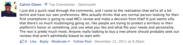 Of course, there are plenty of comments that intelligently and constructively argue the pros and cons of each platform. These comments are the reason that all the other (^) reasonless-ly nasty comments don’t make us cry into our keyboards. They also bring up new points for future articles, which is much appreciated.