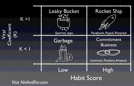 Relying too heavily on viral growth is also bad for business. Silicon Valley is strewn with the stories of “leaky bucket” companies – businesses that grew quickly, annoyed lots of people, and died. While some of these companies were pure spam, others offered value to users but failed to form habits.