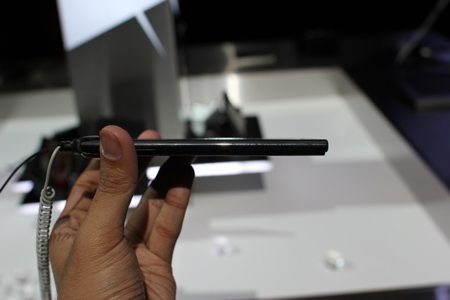 That said, it’s surprisingly comfortable when held Game Boy-style; that is, with both hands. Its thin (8.5mm) waistline also makes for a very light device, though it’s probably bound to draw comparisons with Samsung’s own Galaxy Note.