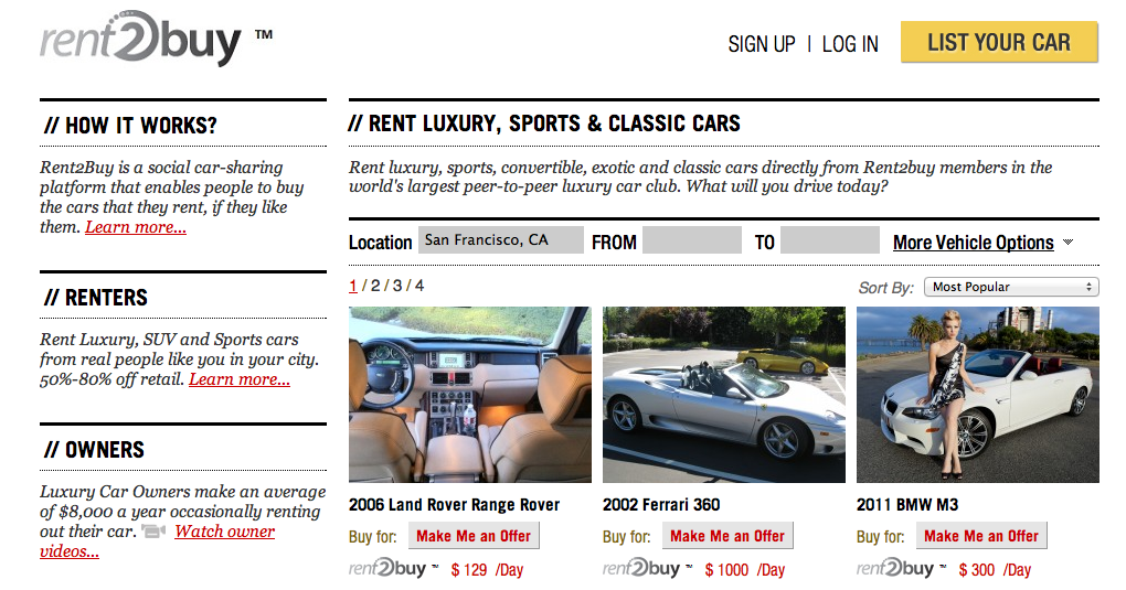 With the acquisition of HiGear, Rent2Buy will be able to provide additional access to consumers and inventory in the San Francisco and Los Angeles markets. Daum tells us that Rent2Buy purchased both the HiGear sharing platform as well as the sharing inventory and customer database.