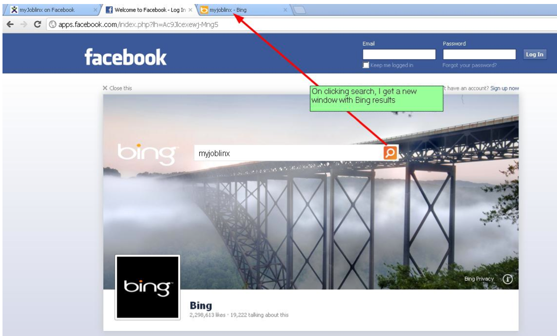 On Wednesday Facebook announced a new logout ad unit where advertisers could pay to have their Page posts displayed. It noted that 37 million people logout of Facebook each day in the US alone, and 105 million per month. This new ad unit is supposed to go live in April, but now Facebook tells me the Bing search experience is its live debut.