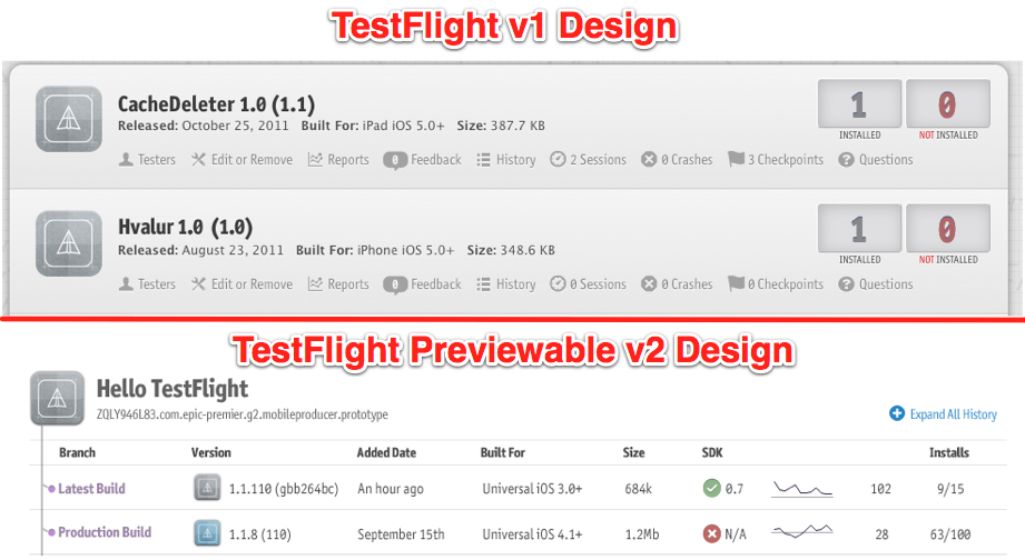 A higher priority, though, was getting TestFlight Live out the door and improving the original TestFlight’s UI. Developers can actually get a sneak preview of the next iteration of TestFlight right now by going into their account and enabling ‘v2’ in the “Area 51” section. Satterfield calls it a “beta beta”, and asks devs to turn v2 off once they’ve had a look, as all the kinks aren’t out yet.