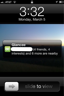 We are testing with different algorithms to send out relevant push notifications. We are working hard towards finding the right balance between being pushy and not being too pushy, and we think we are getting there quickly. This is part of our philosophy of being nice, which seems after all to work well also for our power users. Oh yeah, and we don’t spam your entire address book with sms about Glancee!