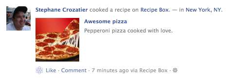 The APIs create parity between what apps can publish and users can post through Facebook.com and the Facebook mobile apps. For example, Facebook explains that “an app used to share your favorite meals can now make it possible to add where you ate and who you were with.”