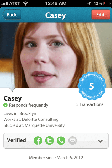Co-founder and CEO Bo Fishback says the reputation system was developed after looking at what works and doesn’t work on dating sites like OKCupid. He admits that this is pretty much an about-face compared to Zaarly’s initial approach to identity. However, he says the company decided to listen to its service providers, who kept telling Zaarly that they want the buyers to know who they are.