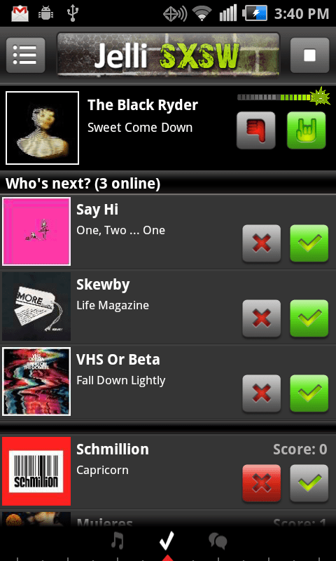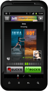The other big news – and news that will matter long after SXSW fervor dies down – is the newly launched Android app. It’s been a long time coming, given that Jelli arrived on iPhone back in November 2010. As with its iPhone counterpart, the Android app allows for various social radio listening features like Jelli’s Rockometer (where you voice your opinion by tapping “rocks” or “sucks”), rocketing/bombing tracks, live chat with other listeners, favorites, and more.