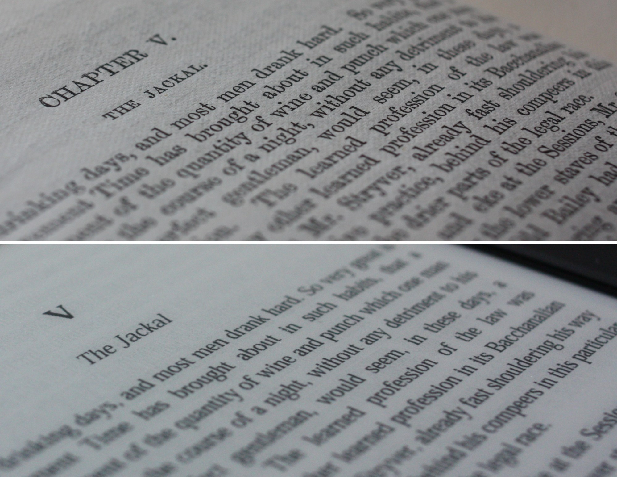 But what you see is also the inevitable result of companies relying on a dwindling pool of OEMs capable of manufacturing parts in the millions. The leading devices all use the same third-generation E-Ink display; few people would notice differences between the way they handle text, or care either way. As I mentioned, there are differences in the interface outside of books, and in how you search and buy, that sort of thing, but the purpose of these devices is to display e-books, and they all do it without appreciable differences.